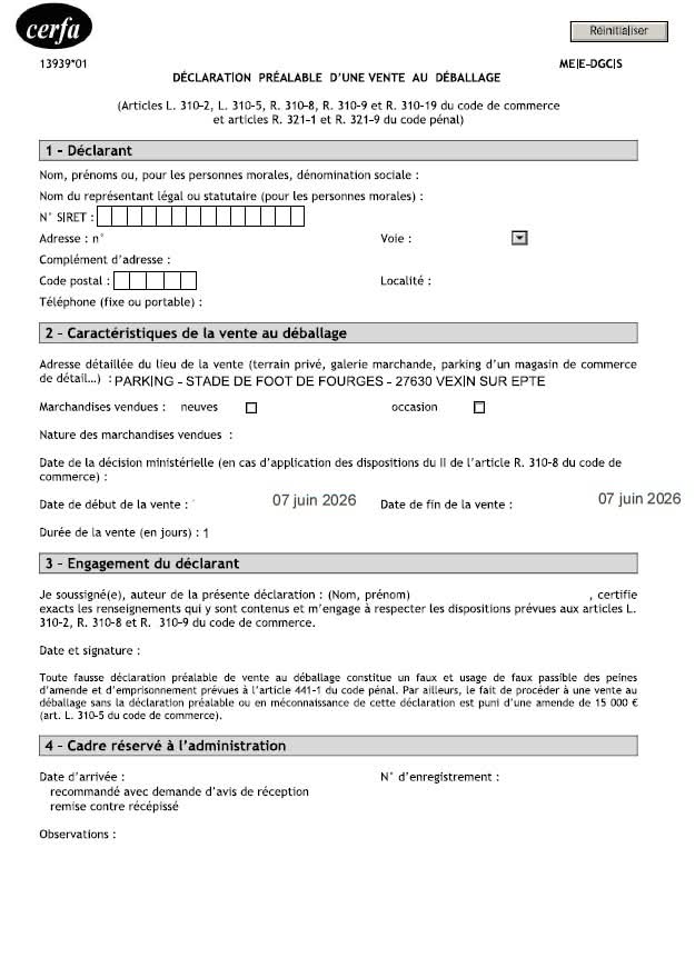 Paiement à la réservation avec « CERFA 13939*01 » rempli
