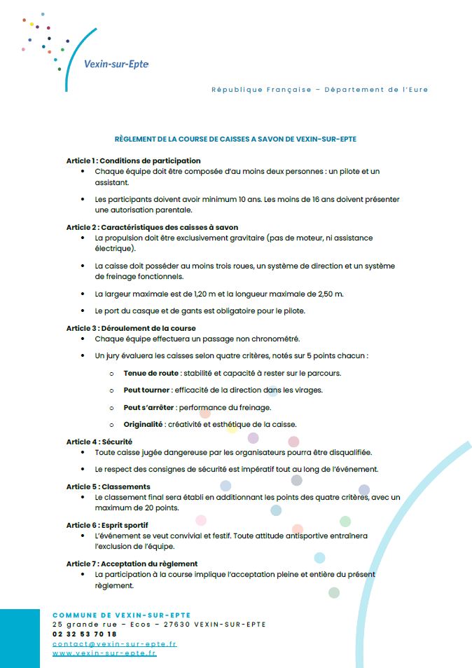 • Démonstration et course de caisses à savon pour les amateurs de vitesse et de sensations fortes (équipe d’au moins 2 personnes)
