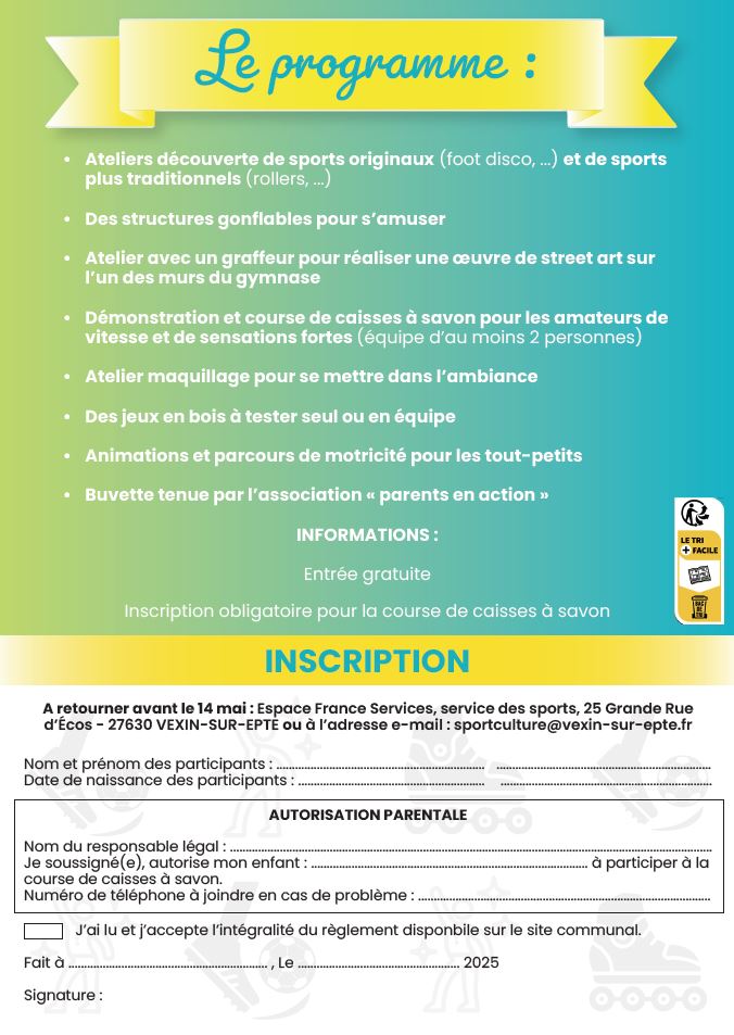 • Ateliers découverte de sports originaux (foot disco, …) et des sports plus traditionnels (rollers, …)